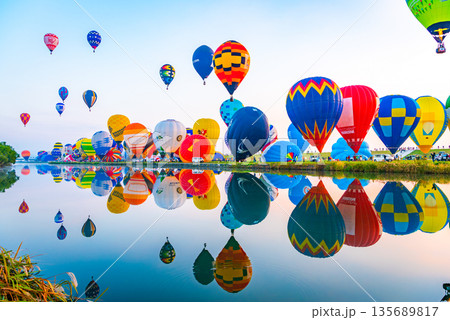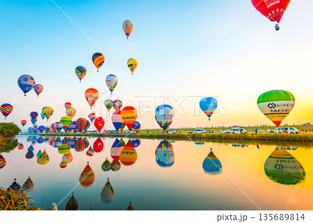 佐賀インターナショナルバルーンフェスタ 嘉瀬川のリフレクションと熱気球