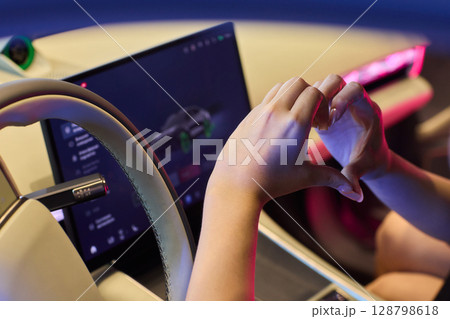 Close-Up of Hands Interacting with High-Tech Interface in Dim Light