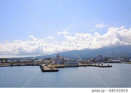 新潟県佐渡島のフェリー乗り場がある両津港の風景