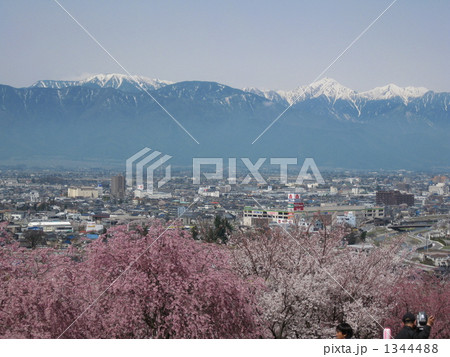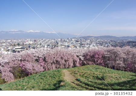 信州 松本の名所 弘法山古墳からの眺め 縦 3世紀築造の古墳は今は桜の名所