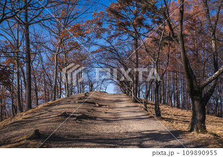信州 松本の名所 弘法山古墳から眺める 北アルプスの常念岳と遊歩道 3世紀築造の古墳は今は桜の名所