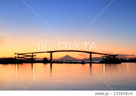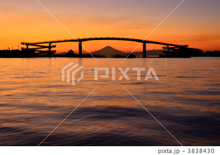 千葉県の富士山のある風景木更津市 「中の島大橋と富士山」