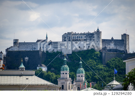 Historic old town of Salzburg and Hohensalzburg Fortress atop the Festungsberg hill in Salzburg, Austria