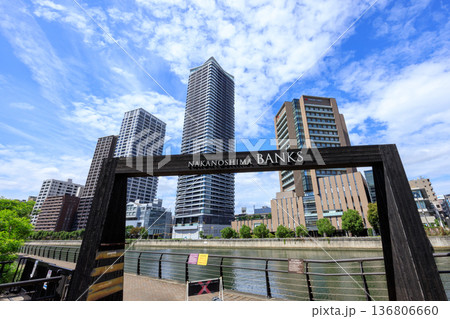 水都大阪 中之島の都市風景 中之島バンクス 新緑の季節