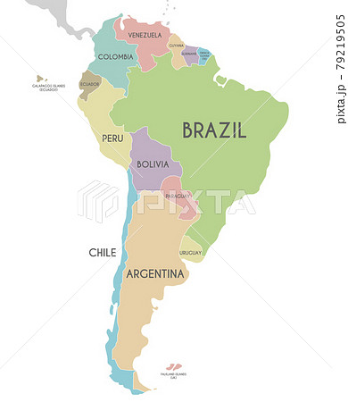 Political South America Map vector illustration isolated on white background. Editable and clearly labeled layers.