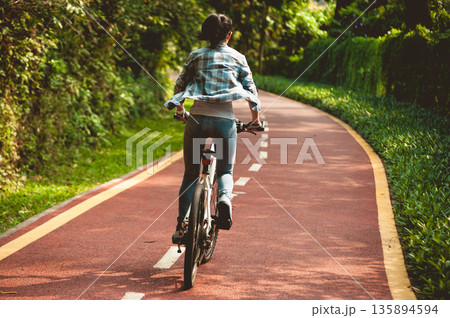 Woman enjoy the cycling in the park
