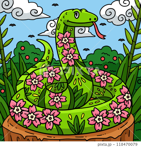 Year of the Snake with Pattern Colored Cartoon