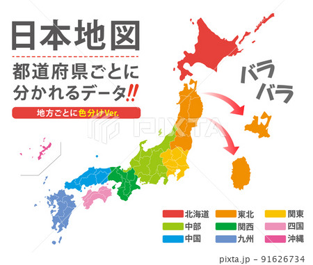 和風な色合いの日本地図。高品質 高精細 線画 白地図 日本列島