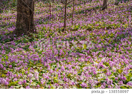 春の可児川下流域自然公園、満開のカタクリ 〈岐阜県可児市〉