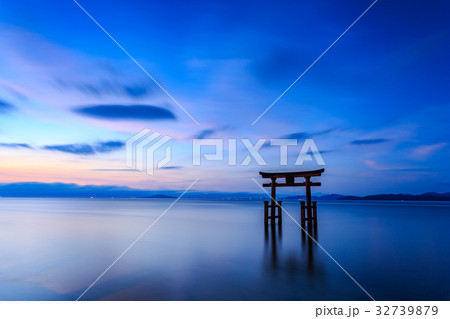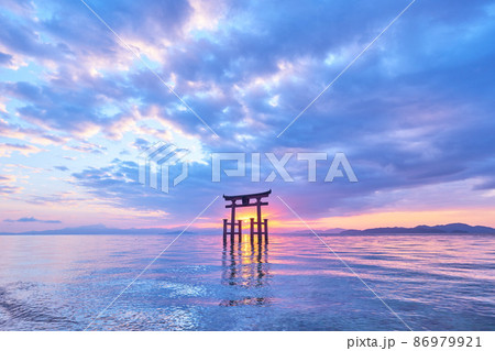 滋賀県 白髭神社の湖中大鳥居 夜明け