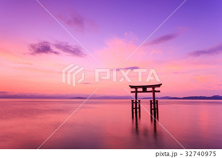 滋賀県 白髭神社の湖中大鳥居 夜明け