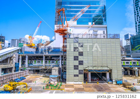日本の東京都市景観5月西口…さよなら西口…西口再開発現場…左奥は山手線ホーム側