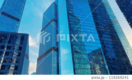 Glass office buildings. Skyscrapers in the business center. Architecture, residential real estate