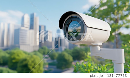 City Surveillance: CCTV Camera Positioned on High Building