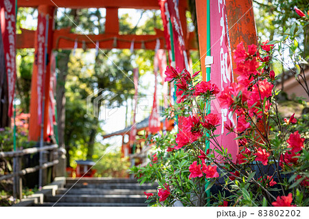 長岡天満宮末社・長岡稲荷大明神へ続く石段に咲いたキリシマツツジの花