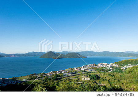パノラマ撮影 洞爺湖と洞爺湖温泉街 北海道洞爺湖町の観光イメージ