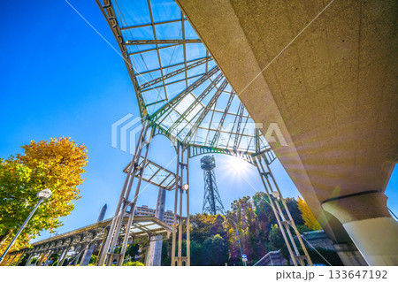 日本の横浜都市景観11月28日。横浜市営地下鉄 中川駅(東京都市大横浜キャンパス前)などを望む