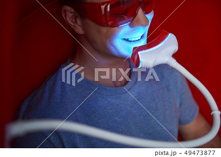 Close up young man on tooth bleaching procedure