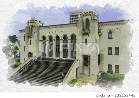 水彩画風 豊橋市公会堂 愛知県豊橋市