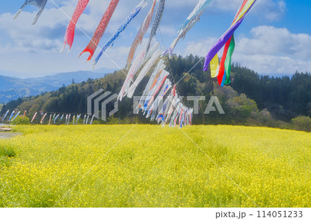 菜の花畑と鯉のぼり