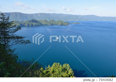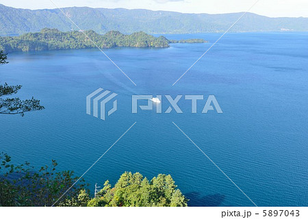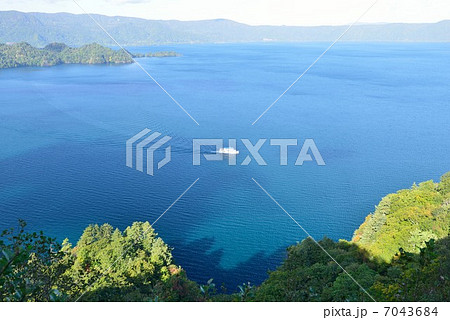 清々しい朝 十和田湖を進む遊覧船 甲岳台より