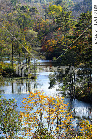 中瀬沼展望台から見る秋の紅葉 裏磐梯の風景