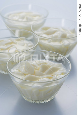 中国発祥のデザート 杏仁豆腐「杏仁羹」クコの実とミントを飾りに(白背景)