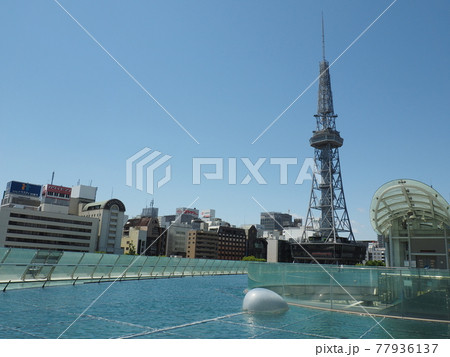 青空の名古屋テレビ塔(セントラルパーク)展望台
