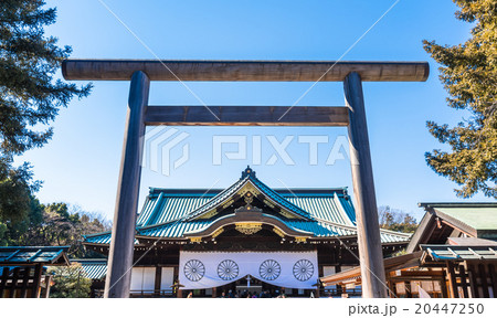 靖国神社 中門鳥居と拝殿 早朝風景 (東京都千代田区) 2017年4月現在