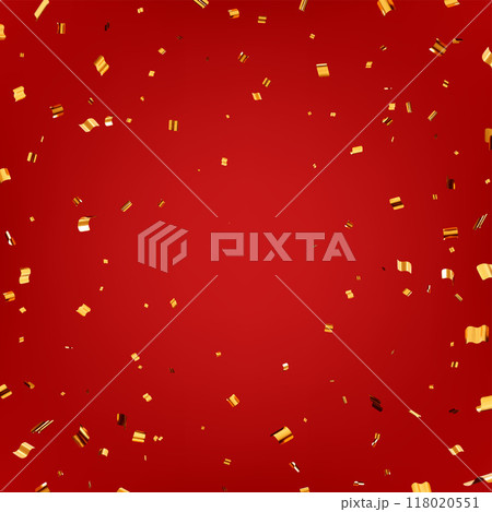 3D Party Gold Confetti on Red Background.