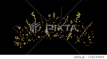 Confetti explosion. Golden serpentine ribbons frame design