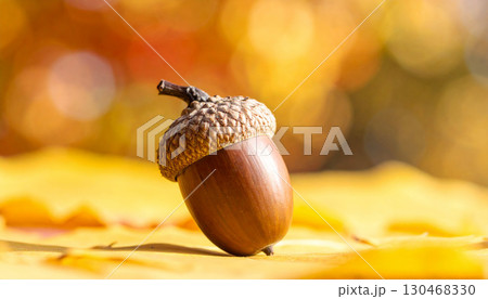 秋色の背景に転がる小さなどんぐりのクローズアップ