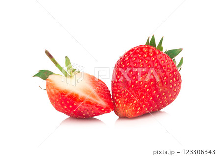 Red seedless watermelon slices isolated on white background with full depth of field.