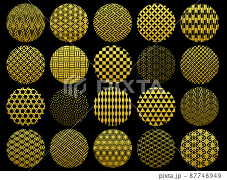 金色の和柄の円の装飾セット