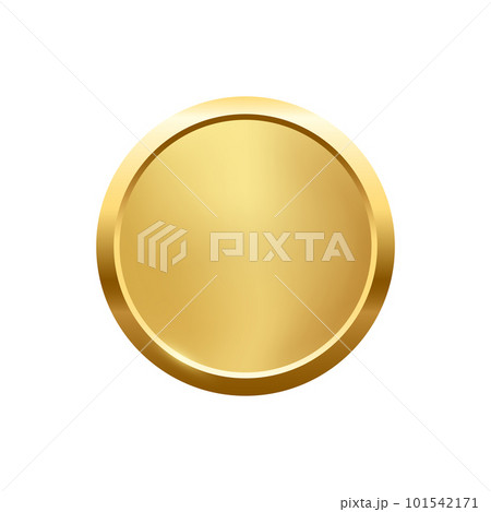 Gold round button with frame, 3d golden glossy elegant circle design for empty emblem