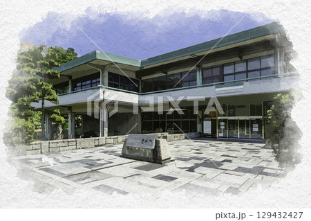 水彩画風 丸亀城 丸亀市立資料館 香川県丸亀市