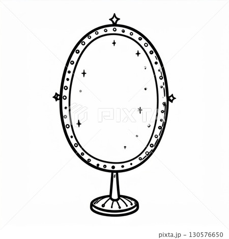 Oval Vanity Mirror Line Art Illustration