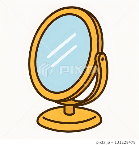 手描き風かわいい丸型スタンドミラーのイラスト