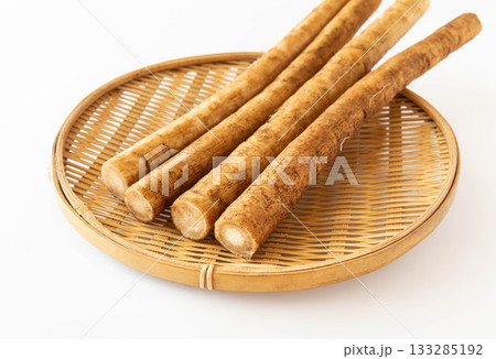 ゴボウのささがき 盆ざるに盛った牛蒡のささがき