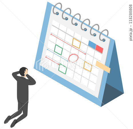 予定がいっぱいで困っている会社員男性・アイソメトリック