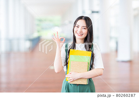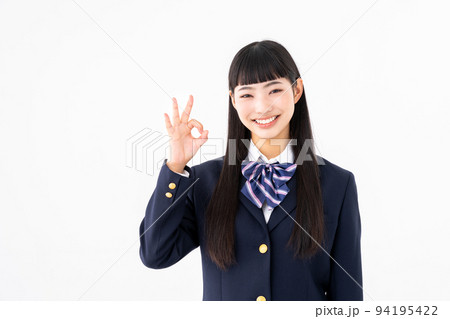 笑顔で丸サインをする夏の学生服姿の中学生女子