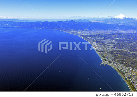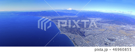 相模湾から富士山を望む/パノラマ、空撮