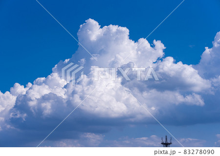 風景、雲、写真 白い入道雲 夏の始まり 青空にモコモコ 綿あめのような入道雲 夏の風物詩の入道雲