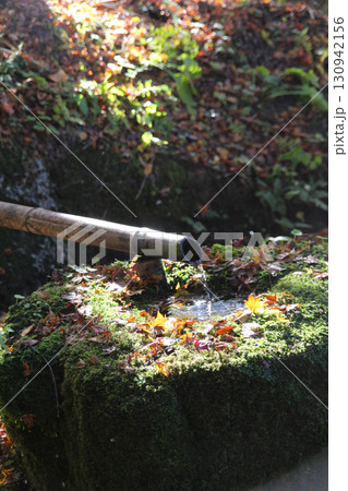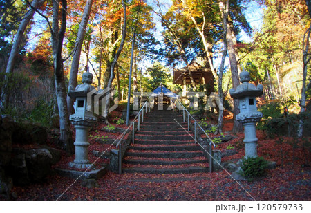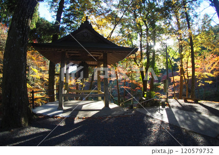 紅葉が美しい秋の境内、もみじ三山の里、11月21日、日本