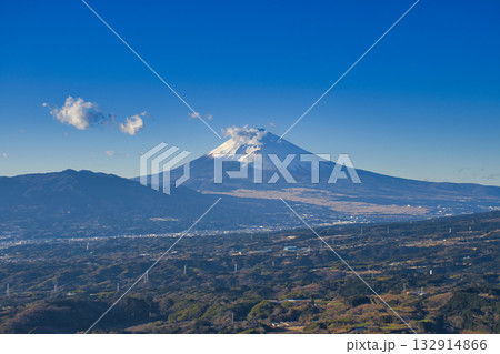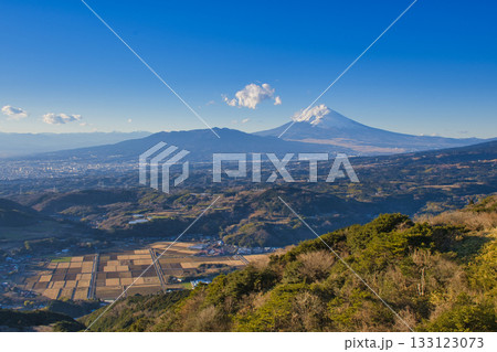 函南町にある西丹那駐車場から見た富士山と街並み(静岡県)