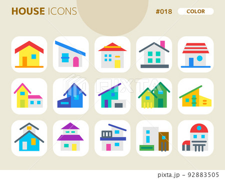 家に関連するカラースタイルのアイコンセット_018