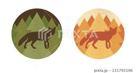 Round emblems with a fox silhouette on forest background. Forest animal. Vector illustration