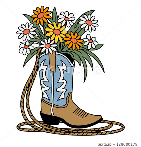 Cowboy Boot Filled with Flowers and Coiled Rope
