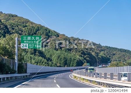 広島県三原市 山陽自動車道の三原久井インターチェンジ付近を走行中の乗用車