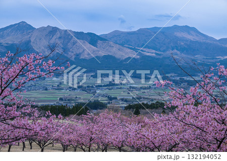 うららかな春日和に映える桜の花(河津桜) 世界最大級の屋外ステージ アスペクタ(南阿蘇村)